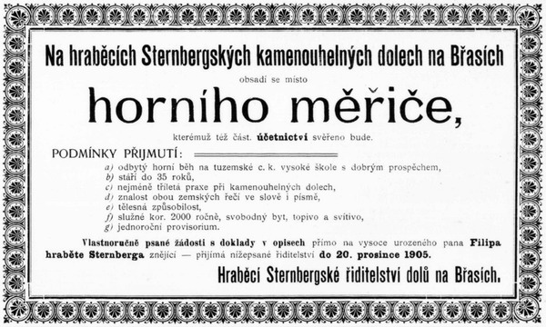 naznačených předmětů na dvě professury, které na vysoké škole montanistické v Lubně